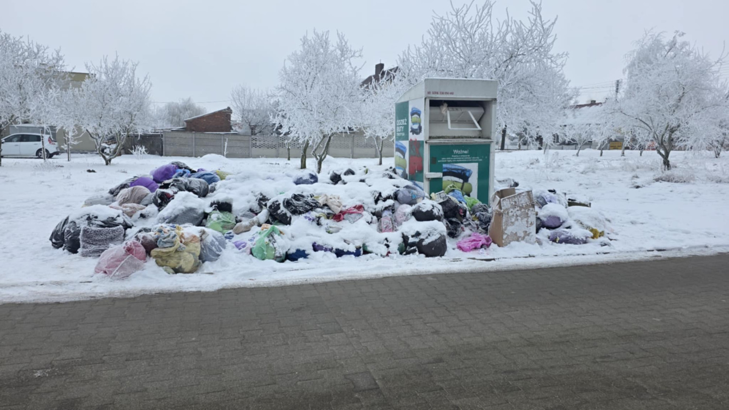 Trudno nie odnieść wrażenia, że sytuacja po prostu wymknęła się spod kontroli. Zamiast pojedynczych toreb, jest już sterta, która wygląda jak prowizoryczne składowisko. Bałagan przykrył śnieg, ale pod białą warstwą nadal leżą setki kilogramów ubrań i innych tekstyliów. Temat wraca do nas regularnie w zgłoszeniach od czytelników. Jeden z nich pisze wprost, że kontenery zamiast pomagać napędzają problem.