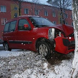 Dziś od rana, na drogach całego powiatu jest bardzo ślisko. Kierowcy jeżdżą bardzo ostrożnie, lecz mimo to, co jakiś czas dochodzi do drobnych kolizji. Tak było przy ul. Mostowej w Gostyniu, gdzie citroen berlingo wpadł w poślizg i uderzył w drzewo.
