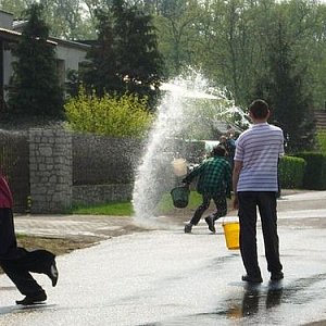 Również w Kosowie lało się wczoraj nieco więcej wody. Tam oblewano się sporymi wiadrami. Podobnie jak w samym Gostyniu, gdzie grupy młodych ludzi wykorzystując wiosenna pogodę biegały po ulicach. Niestety z roku na rok widać, że chętnych do zabawy w śmigusa-dyngusa jest mniej. Wynika to z tego, że w dzisiejszych czasach nie każdy ma ochotę na "wiosenne oczyszczenie", tym bardziej, że niewiele ma ono dziś wspólnego z prawdziwą tradycją.