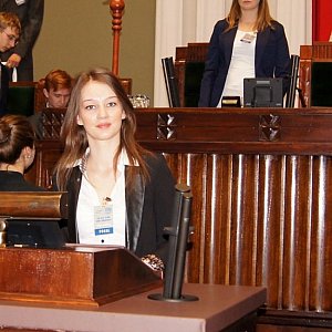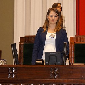 Następnego dnia posłowie udali się do gmachu Sejmu. Mieli oni szansę zwiedzić ten wspaniały budynek, zobaczyć gabinety między innymi Jerzego Wenderlicha, Janusza Palikota oraz porozmawiać z europosłem Ryszardem Czarneckim.Tego dnia w sali plenarnej wszyscy zajęli miejsca poselskie, a marszałek Ewa Kopacz rozpoczęła posiedzenie. Tematem XIX Sesji Sejmu Dzieci i Młodzieży był „Lokalny ekorozwój”, dlatego na wstępie pani marszałek powiedziała: - Praktyczny wymiar działań na rzecz ekorozwoju to tysiące drobnych, praktycznych kroków. Choć dziś nie macie jeszcze wpływu na decyzje strategiczne, to przecież praca na rzecz ekorozwoju przejawia się właśnie w praktycznych sprawach, takich jak oszczędzanie wody i prądu, dokonywanie racjonalnych zakupów, segregacja śmieci czy dbanie o zieleń. Warto pamiętać, że udział w drobnych sprawach ekologicznej codzienności to także obywatelska odpowiedzialność za zdrowy rozwój, którą niesie każdy z nas niezależnie od wieku i społecznej pozycji.