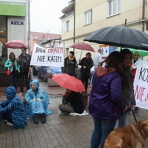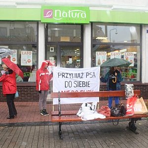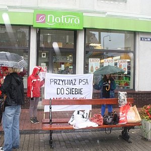 W czasie sobotniej akcji wolontariusze spacerowali też po deptaku z transparentami, na których widniały hasła – "Bądź bratem nie katem", "Kochaj - nie krzywdź", "Przywiąż psa do siebie nie do budy" oraz wręczali przechodniom ulotki informacyjne.