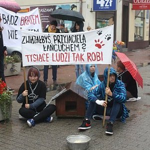 Gostyńskie Stowarzyszenie Przyjaciół Zwierząt "Noe" przyłączyło się do ogólnopolskiej akcji "Zerwijmy łańcuchy". Happening, który odbył się na gostyńskim deptaku, miał uświadomić ludziom, jak wiele cierpienia sprawia psu ciężki łańcuch na szyi. W ramach solidarności ze zwierzętami każdy mógł założyć taki właśnie łańcuch i poczuć jego ciężar na własnym ciele.