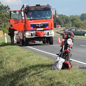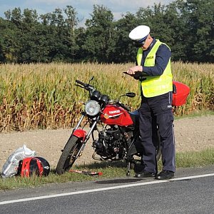 Na drodze krajowej nr 12 za miejscowością Gola, gmina Gostyń doszło do potrącenia motorowerzysty. Przyczyną kolizji było niezachowanie należytej ostrożności podczas wyprzedzania przez kierowcę ciężarówki. W wyniku zderzenia do szpitala trafiła pasażerka jednośladu.