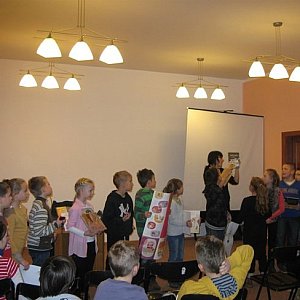 Na spotkanie z pisarką Roksaną Jędrzejewską-Wróbel do gostyńskiej biblioteki przybyło blisko czterdzieścioro uczniów klas trzecich ze Szkoły Podstawowej nr 2 w Gostyniu wraz z opiekunkami. Goszcząca w Gostyniu autorka książek dla dzieci opowiedziała nie tylko o bajkach i opowiadaniach, które tworzy, ale też o pisaniu scenariuszy, tekstów do podręczników czy swej współpracy z redakcją dziecięcą Polskiego Radia. Pisarka przedstawiła też małym słuchaczom cały proces powstawania książki, począwszy od pisarskich inspiracji po pracę wydawcy, ilustratora i introligatora.