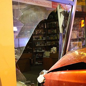 Do zdarzenia doszło około godz. 22:30. Kierująca seatem cordobą młoda kobieta z niewyjaśnionych dotąd przyczyn wjechała na chodnik, po czym „wbiła się” w witrynę księgarni. Okazało się, że jako jedyna z piątki podróżującej autem potrzebuje pomocy medycznej. Pogotowie przewiozło ją do szpitala. Na miejscu szybko pojawiły się trzy radiowozy i dwie jednostki straży pożarnej. Policjanci zablokowali też część ulicy Kolejowej, na której cały czas trwa usuwanie szkód. Więcej szczegółów podamy jutro.