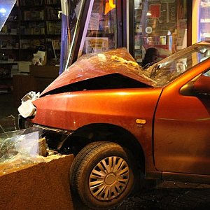 Jedna osoba ranna i poważne straty materialne to wynik zdarzenia drogowego, do jakiego doszło na ul. Kolejowej w Gostyniu. Z niewiadomych przyczyn kierująca seatem cordoba wjechała w witrynę księgarni. Kobieta trafiła do szpitala. W samochodzie podróżowały jeszcze cztery osoby, które o własnych siłach opuściły auto.