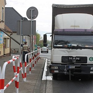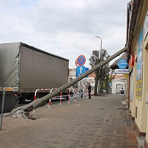 Uszkodzona przez samochód ciężarowy latarnia przewróciła się na budynek w centrum Gostynia. Na szczęście nikt w tym czasie nie szedł chodnikiem. To nie pierwsze zdarzenie w tym miejscu. Świadkowie twierdzą, że kiedyś dojdzie tam do prawdziwej tragedii. Na razie tylko drogowcy co jakiś czas wymieniają zniszczone barierki.