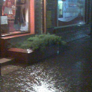 Rondo ?Solidarności?, Kolejowa, 1-maja i Ks. Olejniczaka już po kilkudziesięciu minutach nie były przejezdne. Woda wdzierała się do mieszkań i sklepów, zalewając wszystko co znajdowało się w jej zasięgu. Właściciele posesji pomimo dużego zaangażowania, nie byli w stanie opanowac żywiołu.