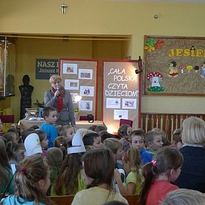 Dzieci ze Szkoły Podstawowej w Daleszynie rozpoczęły wspólne czytanie w ramach akcji „Cała Polska Czyta Dzieciom”, której głównym celem jest rozbudzenie u dzieci zamiłowania do czytania. Jako że październik ogłoszony jest Międzynarodowym Miesiącem Bibliotek Szkolnych, najmłodsi chętnie przystąpili do akcji.