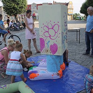 W niedzielne popołudnie spora grupa małych artystów zebrała się na gostyńskim rynku. Na rysunkach tworzonych przez najmłodszych można było zobaczyć kolorową lokomotywę oraz barwne postacie. Wyobraźnia dzieci nie miała granic. Ogromne zainteresowanie najmłodszych wzbudziła również kartonowa konstrukcja, która w mgnieniu oka została pokolorowana.