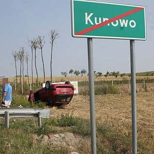 Na trasie Kunowo - Małachowo samochód osobowy wjechał do rowu i dachował. Chwilę wcześniej ten sam samochód o mało nie zderzył się z ciężarówką. Niewykluczone, że kobieta prowadząca auto zemdlała za kierownicą. Z obrażeniami głowy została przewieziona do gostyńskiego szpitala.