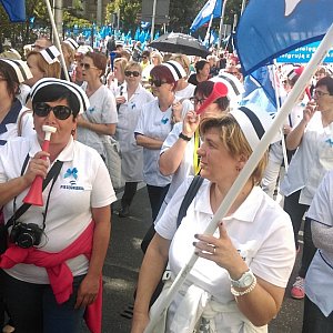 Podczas demonstracji w Warszawie pielęgniarki miały na sobie czepki i fartuchy, aby podkreślić solidarność swojej grupy zawodowej. W tłumie wyraźnie przeważały starsze kobiety. - Jeżeli widziałam pośród nas na 1 tys. osób może 100 młodych pielęgniarek, to było dużo. Dziwiłam się nawet, skąd takie młode osoby się wzięły, bo nie ma, po prostu nie ma młodych pielęgniarek. Nawet ja czułam się stosunkowo młodo już jako starsza pielęgniarka, bo były tam naprawdę bardziej wiekowe ode mnie pielęgniarki, bardziej zmęczone życiem i pracą… My już nie mamy czasu czekać – podsumowuje Małgorzata Ratajczak.