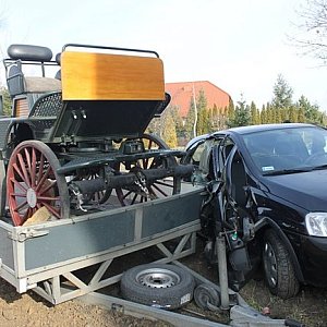 ale trzeba pochwalić gościa ,że bryczkę zabezpieczył perfekcyjnie ! po takiej kolizji i nie spadła brawo !!!!