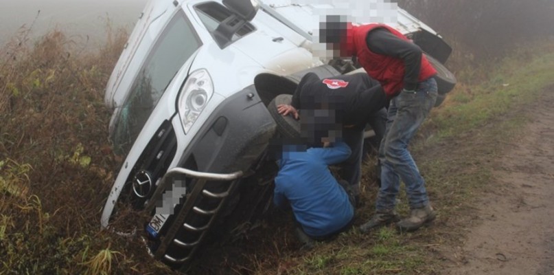 Do kolizji doszło w piątek około godz. 13:00 na trasie Borek Wlkp. - Jeżewo. 69-letni kierowca mercedesa sprintera przystosowanego do przewozu zwierząt na zakręcie drogi stracił panowanie nad autem i wjechał do rowu. - Kierowca na łuku drogi nie dostosował prędkości do warunków atmosferycznych, w wyniku czego wjechał do przydrożnego rowu, wywracając pojazd na prawy bok - mówił Jakub Tomczak, funkcjonariusz Wydziału Ruchu Drogowego KPP w Gostyniu. Mężczyzna tłumaczył, że od pięćdziesięciu lat posiada prawo jazdy i ma spore doświadczenie, ale tym razem zaskoczyła go mgła. Został ukarany mandatem karnym.