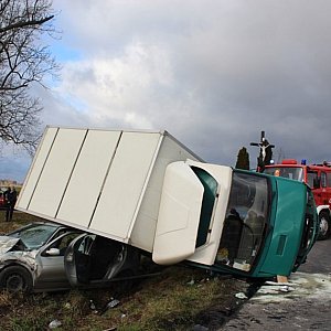 Do groźnego wypadku doszło na skrzyżowaniu dróg Krzekotowice- Magdalenki- Gębice. Samochód dostawczy zderzył się z osobówką, która została zepchnięta do rowu. To jednak nie koniec. Siłą uderzenia dostawczy lublin przewrócił się na dach renault megane, przygniatając swoim ciężarem trzy osoby.