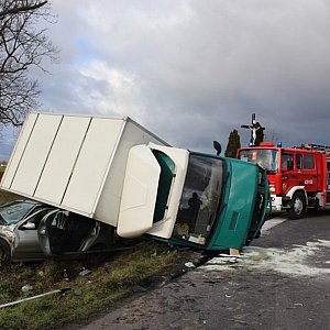Do zdarzenia doszło ok godz 12:00. Początkowo w samochodzie uwięzione zostały trzy osoby - kierowca i dwoje pasażerów. Jednemu z mężczyzn udało się jednak wydostać z auta. Wszyscy zostali przetransportowani do szpitala w Gostyniu. Najpoważniejszych obrażeń doznała pasażerka renault, kobieta ma prawdopodobnie złamaną nogę. Ze wstępnych ustaleń policji wynika, że zawinił kierowca samochodu dostawczego. - Mężczyzna nie zatrzymał się przed znakiem "stop" i doprowadził do zderzenia z pojazdem renault megane. W wyniku zderzenia pojazdy przemieściły się do rowu, a daewoo lublin przewrócił się na osobówkę - mówił Henryk Grabny, funkcjonariusz Wydziału Ruchu Drogowego KPP w Gostyniu. Więcej w kolejnych newsach.