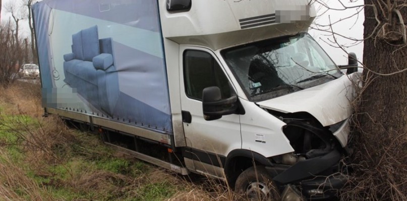 Do zdarzenia doszło w piątek 9 grudnia około godz. 13:30. Kierowca iveco, jadąc od strony Podrzecza w kierunku Grabonoga, nagle stracił panowanie nad autem i uderzył w drzewo. - Kierowca, 25-letni mieszkaniec powiatu śremskiego, twierdzi, że stracił kontrolę nad autem w wyniku silnego podmuchu wiatru - mówił Marcin Łagódka z Wydziału Ruchu Drogowego KPP w Gostyniu. Jak ustalono, kierowca był trzeźwy i nie przewoził żadnego towaru. Został przetransportowany karetką do gostyńskiego szpitala.