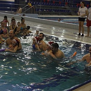 Święty Mikołaj dociera wszędzie i do każdego. Pojawił się nawet na gostyńskiej krytej pływalni "Na Fali". Towarzyszyli mu jego pomocnicy i spora gromadka dzieci chętnych do udziału w licznych sportowych i świątecznych konkursach.