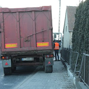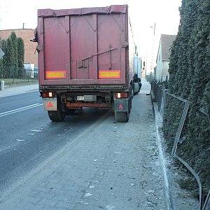 W poniedziałek 27 lutego w Kunowie (gmina Gostyń) około godz. 16:00 tir wjechał w ogrodzenie posesji. Z ustaleń policji wynika, że próbował uniknąć zderzenia z samochodem osobowym. - Kierujący samochodem ciężarowym marki MAN wraz z naczepą ciężarową, 58-letni mieszkaniec powiatu rawickiego, w celu uniknięcia zderzenia z samochodem osobowym marki Opel Corsa, który wyjeżdżał z posesji, zjechał na prawy chodnik, doprowadzając do uderzenia w ogrodzenie - wyjaśnia sierż. Katarzyna Ptak z Wydziału Ruchu Drogowego KPP w Gostyniu. Pomiędzy pojazdami nie doszło do kolizji. Kierowcom też nic się nie stało. Nikt też w momencie zdarzenia nie przechodził chodnikiem. Najbardziej ucierpiał płot. - Byłem akurat w mieszkaniu. Słychać było potężny huk i to wszystko. Wyszedłem, to tir stał przodem w płocie. Teraz już kierowca odjechał kawałek dalej, ale ma uszkodzoną oponę - mówił właściciel posesji.
