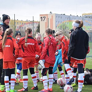 Na pewno mają charakter – są waleczne i nie odpuszczają. Są także zaangażowane i ambitne. Charakter jest najważniejszy, dlatego że można nie mieć pewnych umiejętności technicznych, ale nabyć je z czasem, wypracować, wytrenować. Aktualnie dziewczyny trenują trzy razy w tygodniu. Pogodzenie tego z nauką wymaga od nich konsekwencji i systematyczności. Podczas naszego pobytu w stolicy i już na samym Stadionie Narodowym dziewczyny cały czas były obserwowane przez trenerów reprezentacji Polski i pracowników PZPN. Być może otrzymają zaproszenia na obóz Letniej Akademii Młodych Orłów organizowany przez PZPN dla najwybitniejszych dziewczyn i chłopców z całej Polski. Mam nadzieję, że kilka naszych dziewczyn spotka ten zaszczyt.