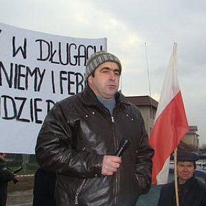 - Pikieta ma służyć oprotestowaniu nieopłacalności hodowli trzody chlewnej. Na dzień dzisiejszy rolnik dostaje ok. 3 zł za żywą wagę, a cena kilograma mięsa tej świni kosztuje 12-18 zł w sklepie. To jest pięciokrotna przebitka ceny, którą my dostajemy. My, producenci dokładamy 100 zł do każdego tucznika. Zakład pana Dudy, jak i każdy inny w Polsce po prostu na nas żeruje. Pikieta odbywa się też w tym miejscu, ponieważ nie chcemy utrudniać ruchu drogowego ? powiedział Zdzisław Kubiak, rolnik z Ponieca.