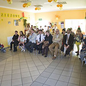 Licznie zgromadzeni rodzice i goście wśród, których znaleźli się: wiceburmistrz Łukasz Burkiewicz, członkowie Gminnej Komisji do Spraw Rozwiązywania Problemów Alkoholowych , sołtys Czachorowa Tomasz Skibicki oraz ksiądz wikary Adam Skociński obejrzeli program artystyczny połączony z multimedialną prezentacją zdjęć.