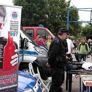 Na szkolnym boisku pojawiły się policyjne i strażackie pojazdy, a także stanowiska, na których prezentowano specjalistyczny sprzęt. Uczniowie mogli również sprawdzić swoje umiejętności jazdy na rowerze pokonując tor przeszkód na czas.