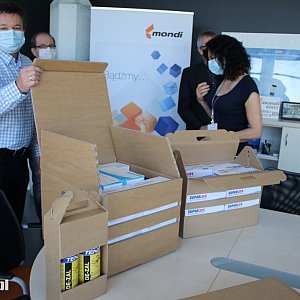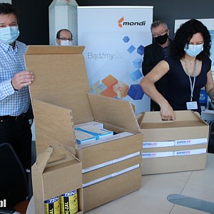 Firma Mondi Simet regularnie angażuje się w akcje społeczne nie tylko na terenie gminy Piaski, gdzie ma swoją siedzibę, ale też w powiecie, jeśli jest taka potrzeba. W pandemii koronawirusa spółka cały czas wspiera gostyński szpital, a dziś przekazała środki ochrony osobistej równiez policjantom z Komendy Powiatowej Policji w Gostyniu. Do przekazania ich doszło za pośrednictwem Międzynarodowego Stowarzyszenia Policji IPA Region Gostyń, które reprezentowali członkowie prezydium - mł. insp. Ryszard Balczyński - były komendant KPP Gostyń oraz Paweł Rutkiewicz, emerytowany funkcjonariusz KPP Gostyń. - Policjanci wspierają nas w tym, żebyśmy byli bardziej bezpieczni w czasach epidemii. I dlatego postanowiliśmy się podzielić zasobami jakie mamy w firmie Mondi, aby nasi policjanci byli bezpieczni w wypełnianiu swojej misji - mówił Krzysztof Jakubowski, dyrektor zarządzający Mondi Simet Sp.z.o.o.