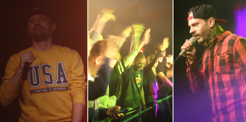 Formacja "Pięć Dwa Dębiec" obecnie występuje pod nazwą "Pięć Dwa". W piątek 26 października grupa, która zdobyła popularność takimi hitami jak "To my, Polacy" czy "Konfrontacje", gościła w Gostyńskim Ośrodku Kultury "Hutnik". Hans, Deep i Bobson z ekipy "Pięć Dwa" promowali swój najnowszy album "Czyste szumienie" w ramach koncertowej trasy "lutujemyraptour2018". - Cześć, witamy Was - powiedzieli na przywitanie i zaczęli puszczać soczyste bity. Oprócz utworów z najnowszej płyty: "Ostatni taki dzień", "Showtime", "To p52 Dwa" nie zabrakło też starych, "dębieckich" klasyków. Pod sceną bawiła się niewielka grupa najwierniejszych fanów, w sumie kilkadziesiąt osób, która bujała się w rytmie hip hopu i śpiewała razem z artystami.