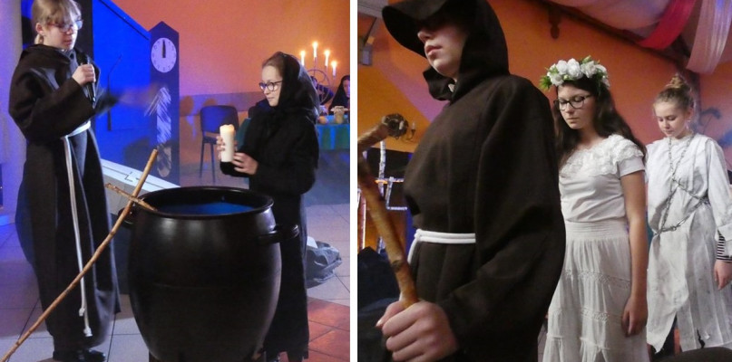 Spotkanie parafian ze Strzelec Wielkich miało w tym roku niecodzienną oprawę. Jeszcze zanim złożyli sobie noworoczne życzenia, rozpoczęła się inscenizacja wielkiego dzieła Adama Mickiewicza czyli „Dziadów cz. II”. Dopracowane dekoracje, ciekawe stroje, rekwizyty i odpowiednie oświetlenie tworzyły niesamowity klimat, w którym mocno wybrzmiewały prawdy ukazane w utworze. W przedstawianie zaangażowali się zarówno dzieci, młodzież jak i dorośli mieszkańcy wsi, którzy przy niemal pełnej sali zaprezentowali swój aktorski talent.