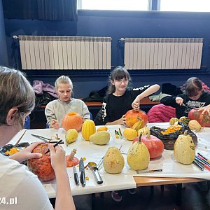 – Robimy dyniowe lampiony, jesienne ozdoby. Niekoniecznie straszne. Pojawiają się też wesołe postacie. To wszystko zależy od dzieci, od tego co sobie wyobrażają i co chcą stworzyć. – dodała pani Irena Kędziora z GOK “Hutnik”.