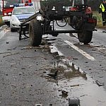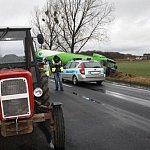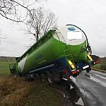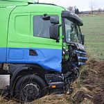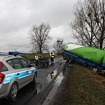 Na drodze wojewódzkiej nr 434 doszło dziś do wypadku drogowego z udziałem przewożącej zboże cysterny. Kierujący samochodem ciężarowym podczas wyprzedzania, uderzył w jadący przed nim ciągnik, po czym wjechał do rowu. Kierowca cysterny z wstrząśnieniem mózgu i stłuczeniem klatki piersiowej, został odwieziony do gostyńskiego szpitala