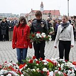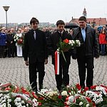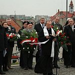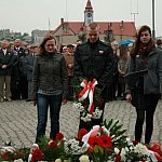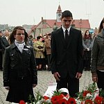 Mimo zimnej i nieprzyjemnej pogody, wyjątkowo dużo osób i delegacji uczestniczyło dziś w oficjalnych obchodach 220 rocznicy uchwalenia Konstytucji 3 Maja. Nie zbrakło samorządowców, przedstawicieli organizacji społecznych i politycznych, a także młodzieży i samych mieszkańców Gostynia. Każdy kto wziął udział w patriotycznej demonstracji, otrzymał też biało-czerwoną naklejkę.