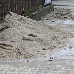 Okazuje się, że zalane domy, piwnice i samochody, to nie jedyne straty, jakie powstały po wczorajszej nawałnicy. Dzień odsłonił kolejny problemy, głównie na drogach i chodnikach. Zalegające błoto, od rana usuwają zarówno służby, jak i sami mieszkańcy. Spływająca z góry ziemia, zasypała ludziom podwórka, klomby i trawniki. Na jedną z posesji przy ul. Wrocławskiej spadła ponad tona gradu.