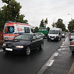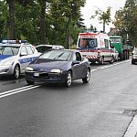 Na jednej z głównych ulic Gostynia doszło dziś do kolizji dwóch samochodów osobowych i ciężarówki. Pasażer jednego z pojazdów, skarżąc się na ból w nodze, został odwieziony do szpitala. Sprawcę kolizji ukarano mandatem karnym.