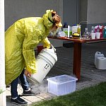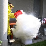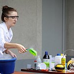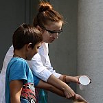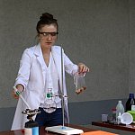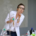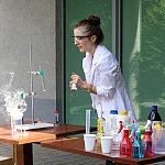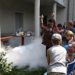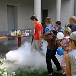 - Chcemy ognia! Więcej dymu! - wołały dzieci w czwartkowe popołudnie w ogrodzie Fundacji „Absolwent”. Nie o chęć ujrzenia pożaru chodziło, lecz o efektowne eksperymenty, które podczas warsztatów chemicznych przeprowadzała dla młodych odkrywców Pani Probówka. Po pokazie mali naukowcy sami mogli spróbować swych sił w eksperymentowaniu.