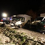 Wyjątkowo trudno jeździ się po drogach powiatu gostyńskiego. Po gwałtownej śnieżycy, jaka przeszła nad naszym regionem około godziny 17:00, drogi zrobiły się białe i bardzo śliskie. Na krajowej "dwunastce", za miejscowością Godurowo, gmina Piaski zderzyło się pięć samochodów. Przez kilka godzin droga była zablokowana. Natomiast na rondzie w Krobi ciężarówka uderzyła w tył pojazdu osobowego.