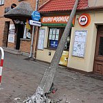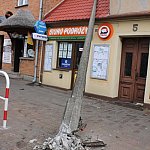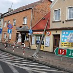 Uszkodzona przez samochód ciężarowy latarnia przewróciła się na budynek w centrum Gostynia. Na szczęście nikt w tym czasie nie szedł chodnikiem. To nie pierwsze zdarzenie w tym miejscu. Świadkowie twierdzą, że kiedyś dojdzie tam do prawdziwej tragedii. Na razie tylko drogowcy co jakiś czas wymieniają zniszczone barierki.