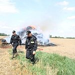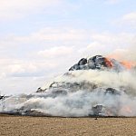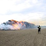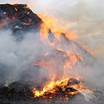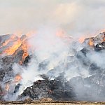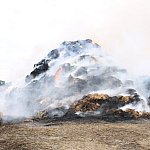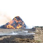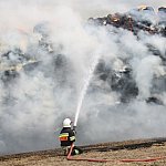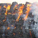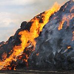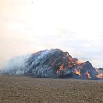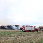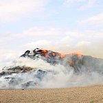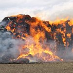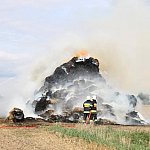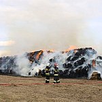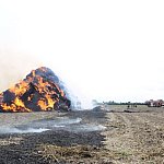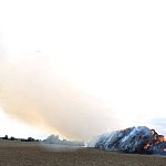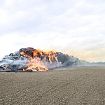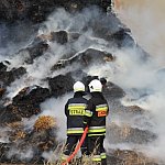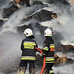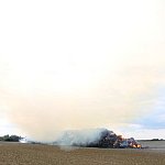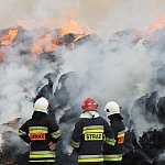Potężny pożar w Pijanowicach, gmina Krobia. Słup gęstego dymu widać z odległości kilku kilometrów. Ogniem objętych jest kilkaset balotów słomy zmagazynowanej na polu. Na miejscu cały czas pracuje kilka zastępów straży pożarnej. Akcja gaśnicza może potrwać nawet do jutra rana. Niewykluczone, że słomę podpalono.