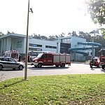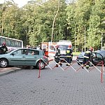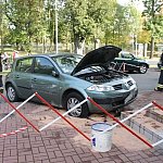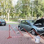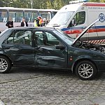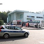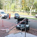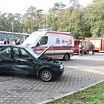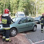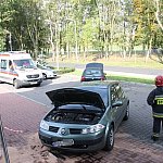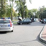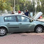 Do nietypowego zdarzenia drogowego doszło na parkingu przy pływalni miejskiej w Gostyniu. Niewykluczone, że kierująca osobowym renault pomyliła gaz z hamulcem, nie zdołała opanować auta i zatrzymała się na schodach wejściowych pływalni. Wcześniej uderzyła w stojące na parkingu auto.