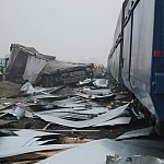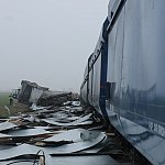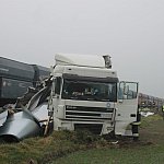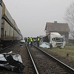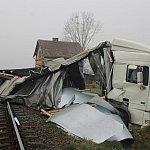Rano na trasie Krobia-Chwałkowo na niestrzeżonym przejeździe kolejowym pociąg towarowy uderzył w przejeżdżającego tira. Kierowca pojazdu twierdzi, że nie widział zbliżającej się lokomotywy, a widoczność ograniczała mu gęsta mgła. Nikomu nic się nie stało. Droga w miejscu wypadku będzie nieprzejezdna przez kilka godzin.