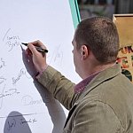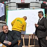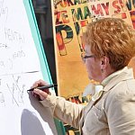 Deszczowa pogoda niemal pokrzyżowała plany członkom Stowarzyszenia ?Powiat Gostyń24?, którzy dzisiaj na gostyńskim deptaku zachęcali przechodniów do udziału w niedzielnych wyborach do Parlamentu Europejskiego. Pomimo trudnych warunków pogodowych, ponad 200 osób złożyło swój podpis na tablicy wspierającej wybory i otrzymało od organizatorów specjalny certyfikat ?Aktywnego Mieszkańca Gostynia?