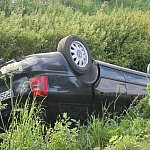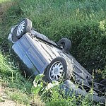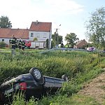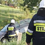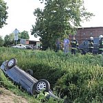 Niewiele brakowało, by doszło tam do tragedii. Samochód osobowy dachował w rowie, wbijając się pomiędzy dwa duże drzewa. Kierowca zasnał lub został oślepiony słońcem. Ostatecznie skończyło się tylko na strachu i mandacie.
