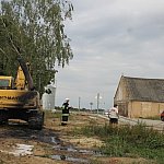 Początkowo ogień próbował gasić operator koparki. Nie dał jednak rady, dlatego wezwał pomoc. Maszyna zapaliła się nagle podczas pracy. Jak ustalono, prawdopodobną przyczyną były pęknięty wąż paliwowy i wysoka temperatura. Straty oszacowano na kilka tysięcy złotych.