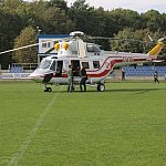 Trwają intensywne przygotowania do wizyty prezydenta Andrzeja Dudy w Gostyniu. Dzisiaj przed południem prezydencki śmigłowiec sprawdzał warunki do lądowania na Stadionie Miejskim. W próbnym lądowaniu brały udział również służby, które będą czuwały nad bezpieczeństwem Prezydenta RP podczas spotkania z mieszkańcami Gostynia.
