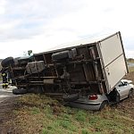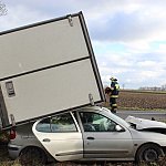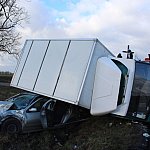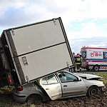 Do groźnego wypadku doszło na skrzyżowaniu dróg Krzekotowice- Magdalenki- Gębice. Samochód dostawczy zderzył się z osobówką, która została zepchnięta do rowu. To jednak nie koniec. Siłą uderzenia dostawczy lublin przewrócił się na dach renault megane, przygniatając swoim ciężarem trzy osoby.