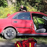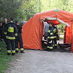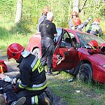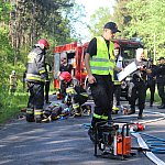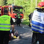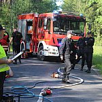 Kolejny poważny wypadek na drogach powiatu gostyńskiego. Na rzadko uczęszczanej przez kierowców trasie rowerzysta wjechał pod koła osobówki, a ta w inny samochód. Auta zaczęły płonąć, a ogień przeniósł się na pobliski las... Na szczęście był to scenariusz ćwiczeń na wypadek realnego zagrożenia.