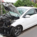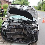 Na prostym odcinku drogi samochód osobowy uderzył w tył naczepy ciągnika rolniczego. Poważnie uszkodzony został przód osobówki. Kierowcom nic się nie stało. Sprawę winy i odszkodowania postanowili załatwić między sobą.