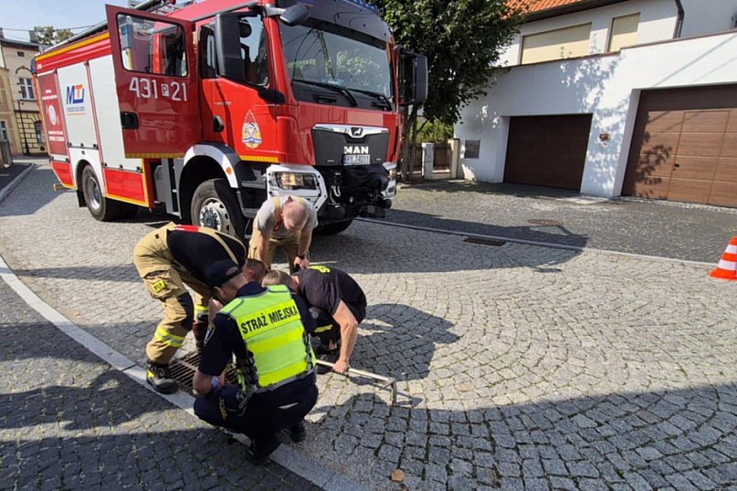 Nietypowa interwencja w centrum Gostynia. Służby wyciągnęły ze studzienki.... królika, który jak się później okazało kilak dni wcześniej zniknął z jednej z pobliskich posesji