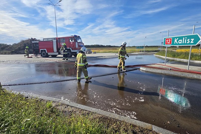 W miejscowości Dąbrówka, na krajowej "dwunastce" doszło do niecodziennego incydentu drogowego. Z samochodu ciężarowego przewożącego obornik część ładunku wysypała się na jezdnię, a przejeżdżające pojazdy rozjechały go po całej drodze. Na miejscu pojawili się strażacy, którzy zajęli się oczyszczaniem nawierzchni